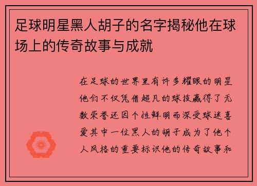 本文将深入探讨中国记者对国外足球明星的采访,揭示他们职业生涯与生活背后的故事。通过对四个方面的分析,我们将了解这些足球明星在成名之前的奋斗历程、在职业生涯中的挑战与收获、他们如何平衡私人生活与公众形象,以及对于未来的展望和影响力。这些内容不仅展示了足球运动员光鲜亮丽的一面,更深刻挖掘出他们内心世界的丰富多彩,让读者可以更全面地理解这些国际体育巨星。 1、奋斗历程揭秘 许多国外足球明星在成名前,经...